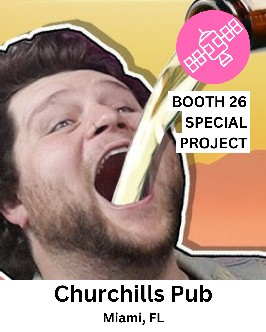 We are absolutely thrilled to announce the EPIC GRAND OPENING of CHURCHILL'S PUB at the SATELLITE ART FAIR! That's right, the stars have aligned! We're celebrating the ultimate collaboration where "Miami's Best Bar" smashes together with "Miami's Best Fair" to create something truly legendary.